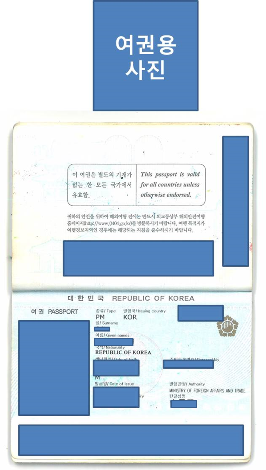 ■ 여권용 사진은 흰색 배경에 여권과 다른 사진으로 스캔해주시길 바랍니다.