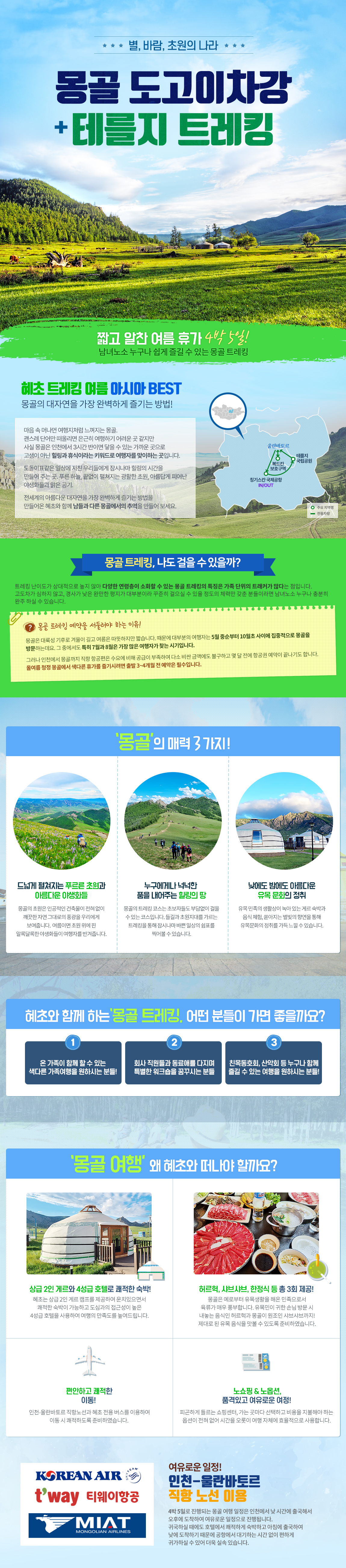 [대한항공]몽골 테를지국립공원+도고이차강 트레킹+관광 5일