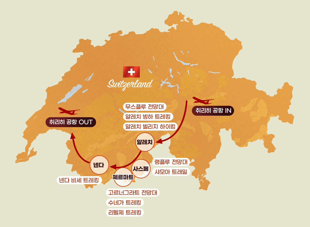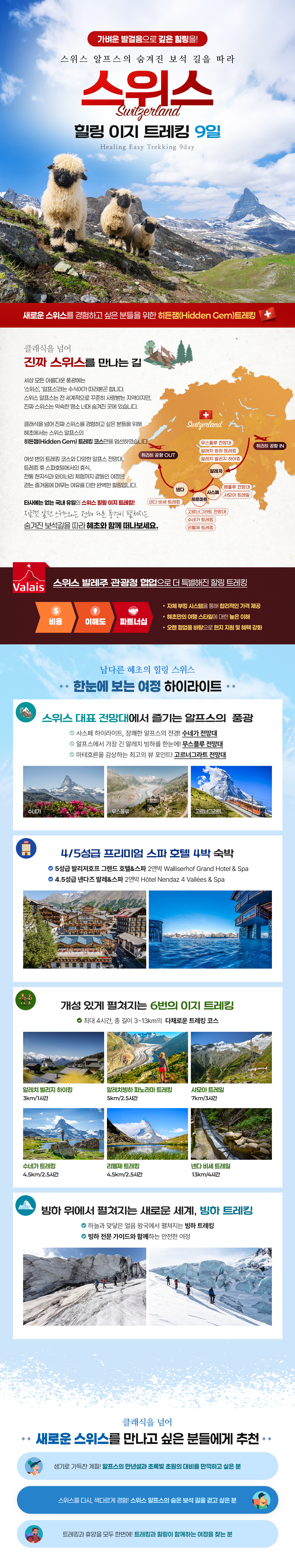 스위스의 아름다운 자연 속에서 힐링할 수 있는 휴양+트레킹 여행