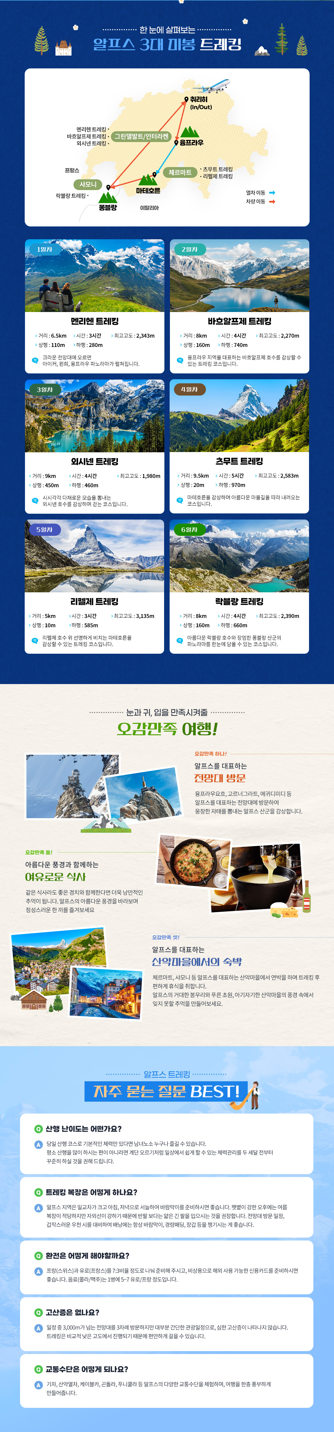■ 전용차량 3회 (취리히 공항->융프라우 지역, 체르마트->샤모니, 샤모니->취리히 공항), 산악열차, 관광지 입장료