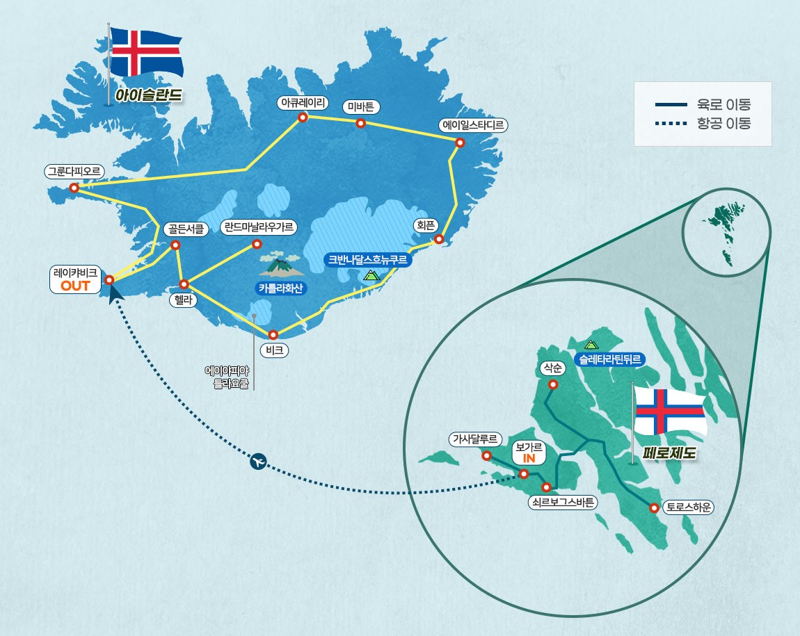 [페로제도] 토르스하운 [아이슬란드] 레이캬비크, 라우가베구르, 비크, 회픈, 미마튼, 아큐레이리