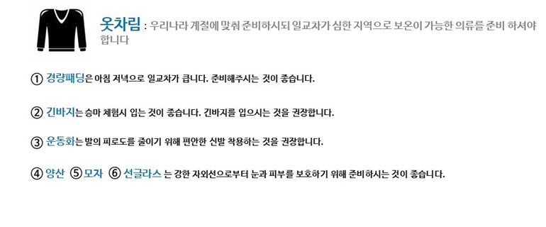 (자세한 사항은 출발 2~3일전 최종 안내드리도록 하겠습니다.)