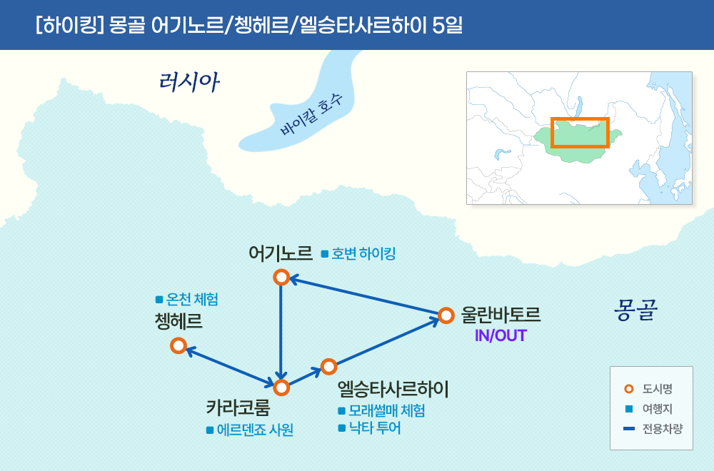 인천-울란바토르-어기노르-하르호린-쳉헤르-엘승타사르하이-울란바토르-인천