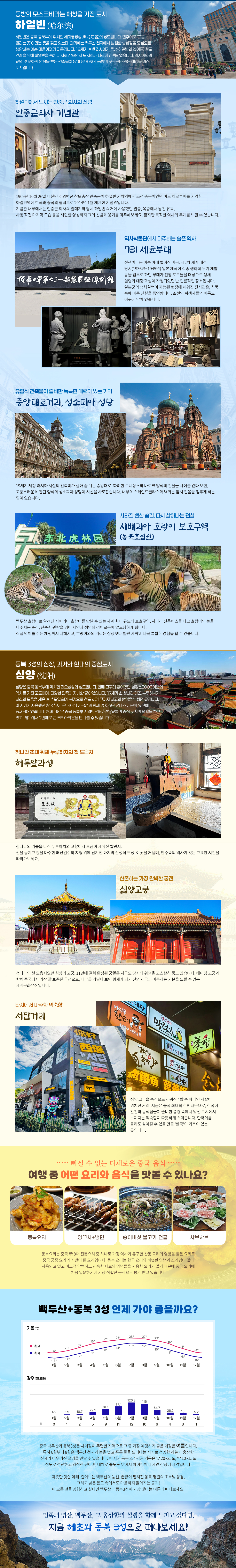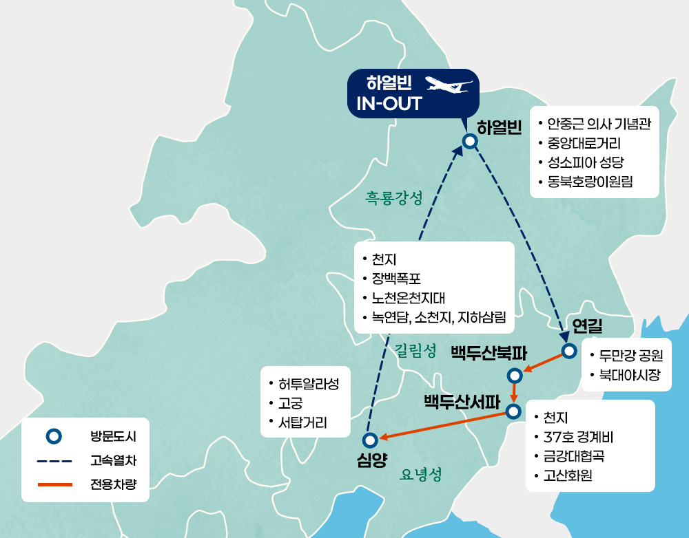 ■ 하얼빈에서 연길, 백두산 그리고 심양까지 동북 3성 주요 도시와 백두산을 탐방하는 여정