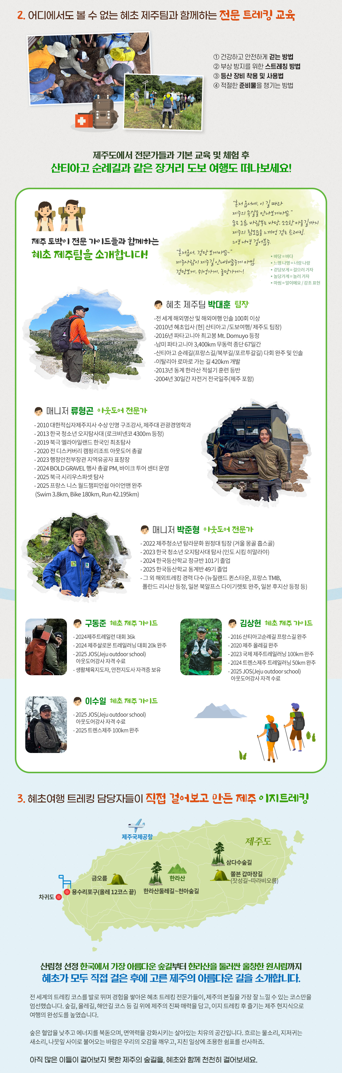 * 제주도 도보여행뿐만 아니라 장거리 트레킹을 위한 아웃도어 전문교육 !