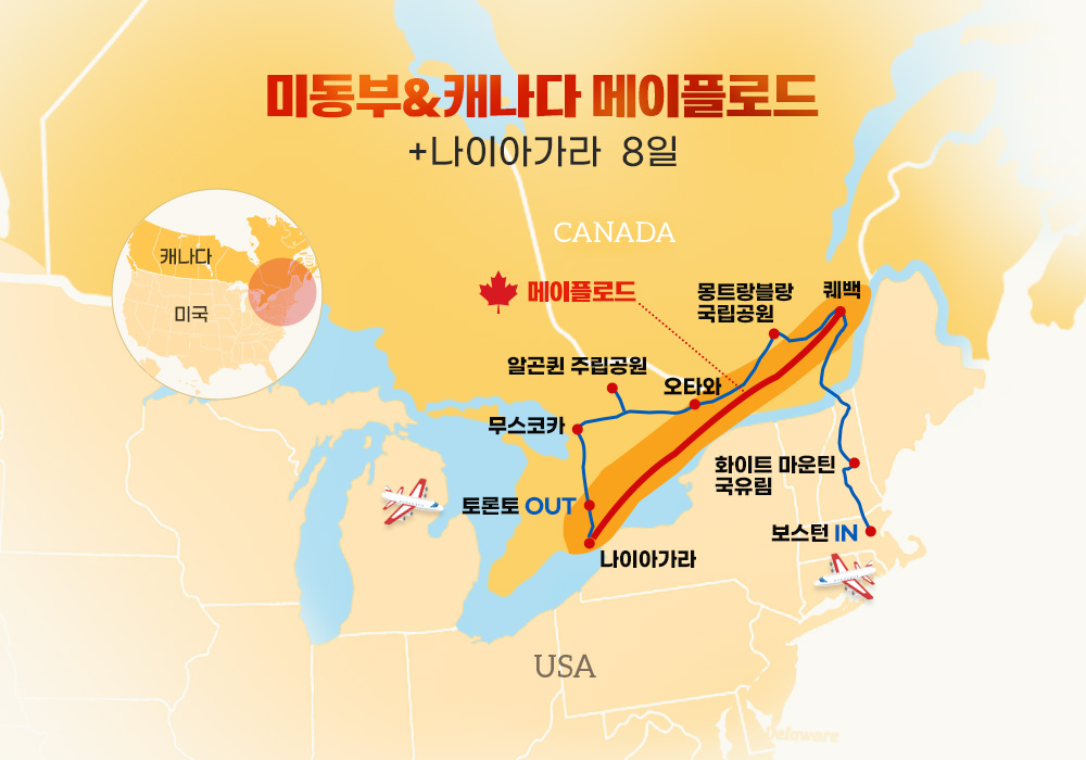 미동부와 캐나다 메이플로드를 가볍게 걸으며 만나는 국내 유일 단풍 여행!