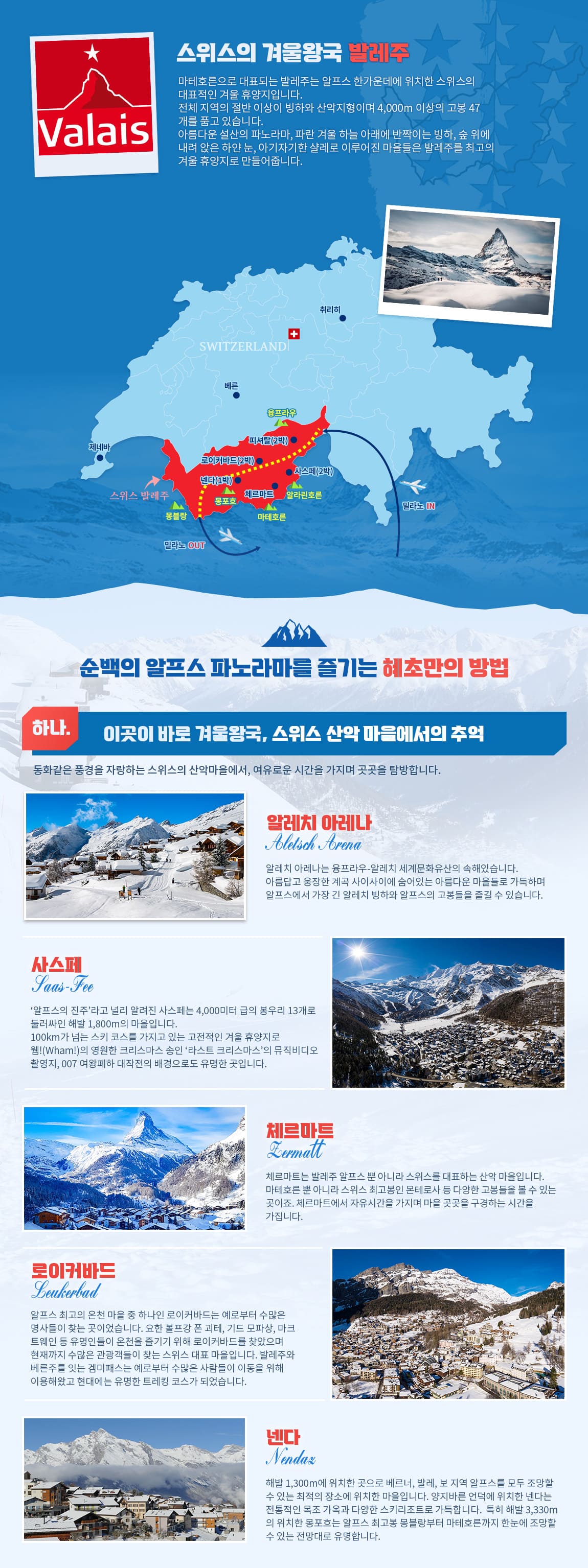 ▲ 알프스의 숨은 진주라고 불리우는 사스페에서 자유시간을 즐기거나 5성급 호텔에서 휴식을 취합니다.