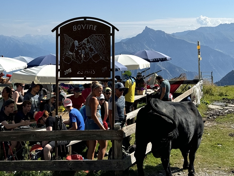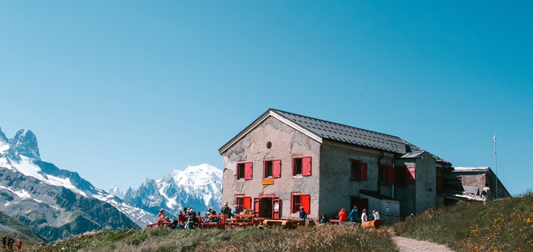 ▲ 햇살이 가득한 알프스 산 자락에 위치한 산장을 만날 때 멋진 풍광 속에서 차 한잔의 여유를 가져보는 것도 알프스 트레킹의 매력 중 하나가 아닐까 합니다. 뚜르 드 몽블랑은 프랑스, 스위스, 이탈리아 3개국에 걸쳐있으며 위치에 따라 각각의 매력을 가지고 있습니다.