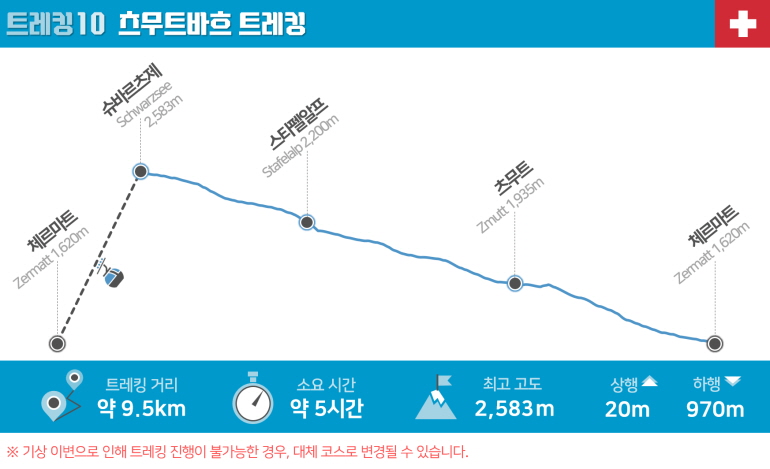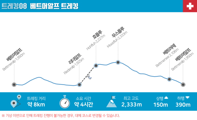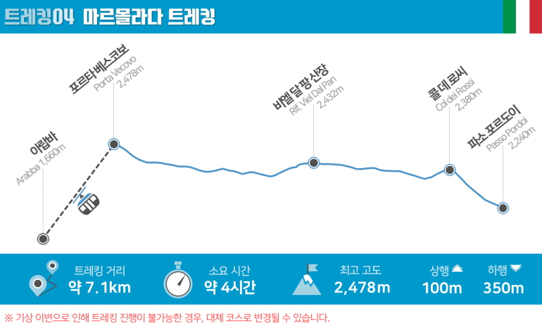 유의사항① 유럽 알프스 전체를 아우르며, 그 중 핵심 코스만을 골라 모은 대장정