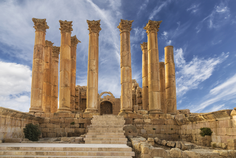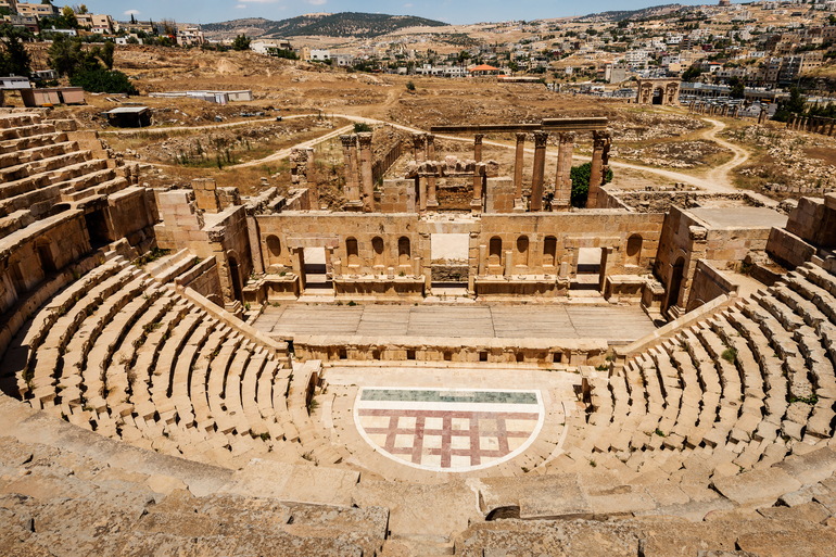 제라시 로마 유적은 요르단 북부 제라쉬 도시에 위치한 고대 로마 시대의 유적으로, 중동에서 가장 잘 보존된 로마 도시 유적 중 하나입니다. 기원후 129년에 세워진 하드리아누스 개선문을 비롯해, 타원형의 오발 광장, 기둥이 늘어선 콜로네이드 거리, 원형 극장, 제우스와 아르테미스 신전 등 다양한 건축물이 남아 있습니다. 이 도시는 로마 제국의 데카폴리스 중 하나로 번영하였으며, 로마식 도시 설계와 문화를 중동 지역에 뚜렷이 남긴 흔적입니다. 현재 제라시는 중요한 관광지이자, 매년 열리는 문화 축제를 통해 과거와 현재가 어우러지는 장소로 자리매김하고 있습니다.