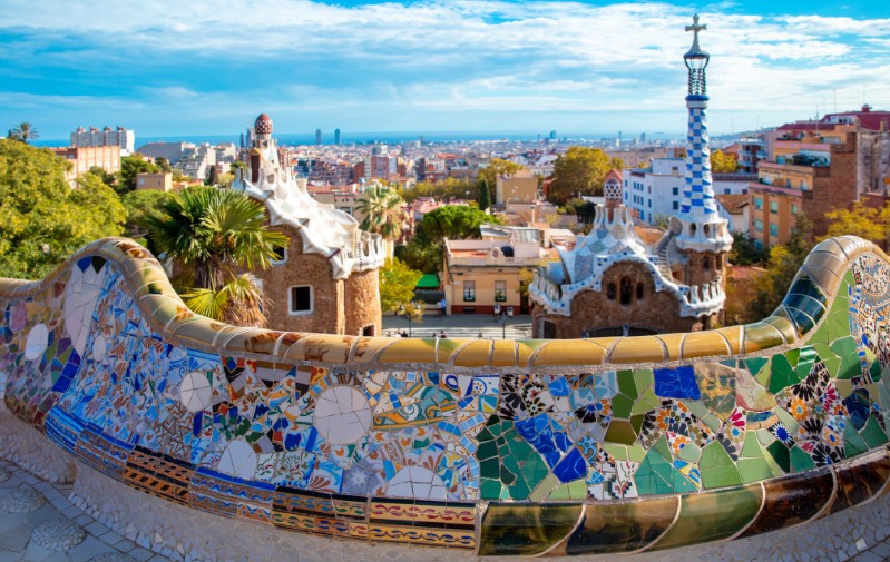 바르셀로나 북쪽 언덕에 자리한 구엘 공원은 건축가 안토니 가우디의 독창적인 예술 세계를 고스란히 담고 있는 공간으로, 바르셀로나를 대표하는 명소 중 하나다. 원래는 주거 단지 개발을 목적으로 1900년대에 착공되었으나, 사업이 중단된 후 공원으로 조성되었다. 1984년 유네스코 세계문화유산으로 등재된 이 곳은 타일로 장식된 뱀 모양의 벤치, 모자이크로 채워진 테랏, 동화같은 탑과 계단들로 가득 차 있다. 특히 자연과 조화를 이루는 곡선미와 독특한 색채감은 가우디 특유의 상상력과 기술력을 잘 보여준다. 공원의 이름은 가우디의 후원자였던 에우세비 구엘의 이름에서 따왔다. |