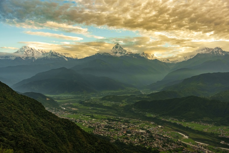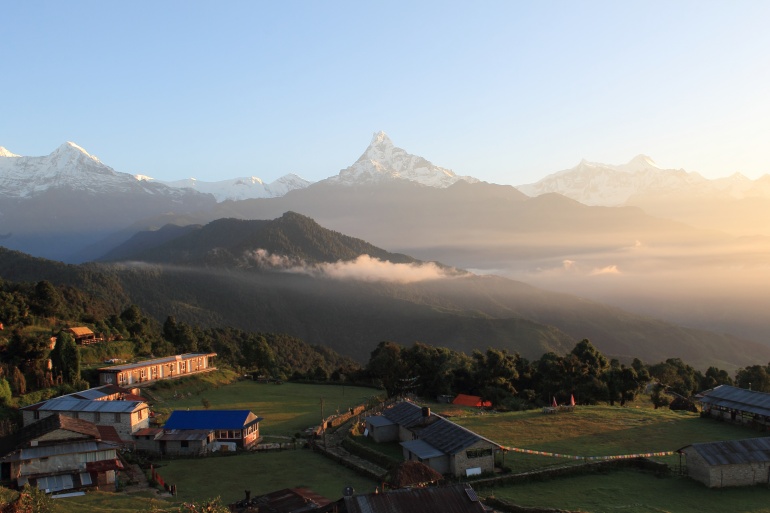 히말라야 설산의 일출을 감상하는 데 최적의 장소로 꼽히는 사랑콧은 마을의 이름이며 해발 1,665m에 위치하고 있습니다. 일각에서는 안나푸르나 5대 전망대로 꼽을 정도로 안나푸르나 산군의 조망이 뛰어납니다.