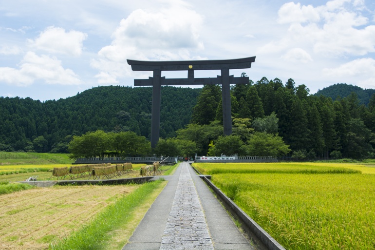 ▲과거에 구마노혼구타이샤가 위치했던 곳에 유일하게 남아있는 오오도리이의 모습입니다.