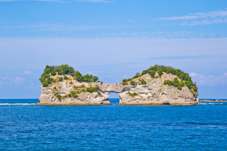 ▲섬의 중앙에 보름달 모양의 구멍이 있는 '엔게츠도'의 정식 명칭은 '다카시마'(高嶋)입니다.