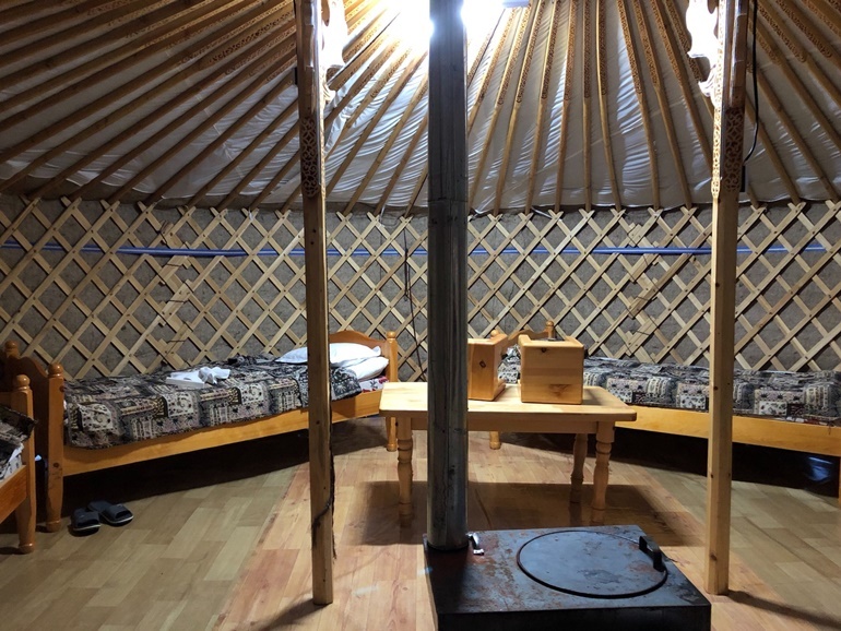 ▲ 몽골의 전통 가옥인 '게르'의 모습이며 내부에는 보통 침대가 3개~4개정도 둘러져 있으며 가운데 난로가 있습니다.