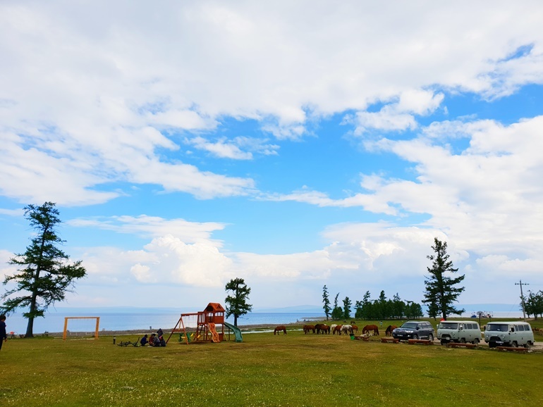▲ 우리가 사용하는 캠프의 모습으로 끝이 보이지 않는 호수와 푸른 초원의 그리고 하늘의 조화가 어울리는 곳입니다.