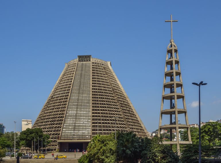 브라질 성인의 이름을 따서 1976년 문을 연 이곳은 건물의 목적을 알 수 없을 만큼 강인한 느낌을 주는 독탁한 설계가 특징인 건물 디자인으로 얼핏 보면 성당처럼 보이지 않는 곳입니다. 지름 104m, 내부높이 68m로 약 2만 5천명을 수용할 수 있으며 거대한 요새를 생각나게 할 정도로 투박하고 인상적입니다. 반면 내부에서는 천장부터 바닥까지 4면을 가득 채운 화려하고 아름다운 스테인드글라스와 위쪽에 매달아 놓은 독특한 그리스도 상을 볼 수 있습니다.