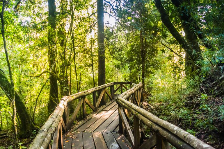 ▲폭포 조망할 수 있는 길과 보존된 온대우림을 걷습니다.