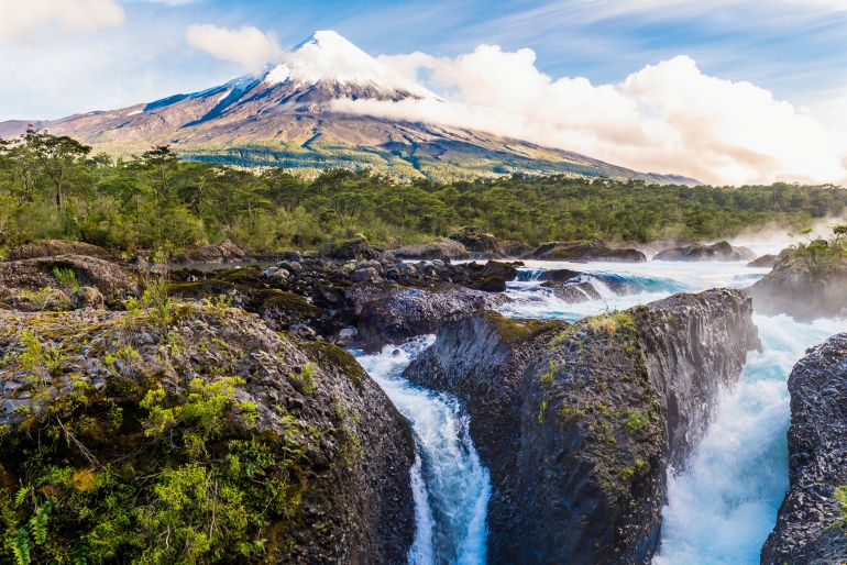 ■ 트레킹 루트 : 에메랄드빛 폭포 뒤로 펼쳐진 오소르노 화산을 조망하고 화산활동으로 생겨난 숲길을 걷습니다.
