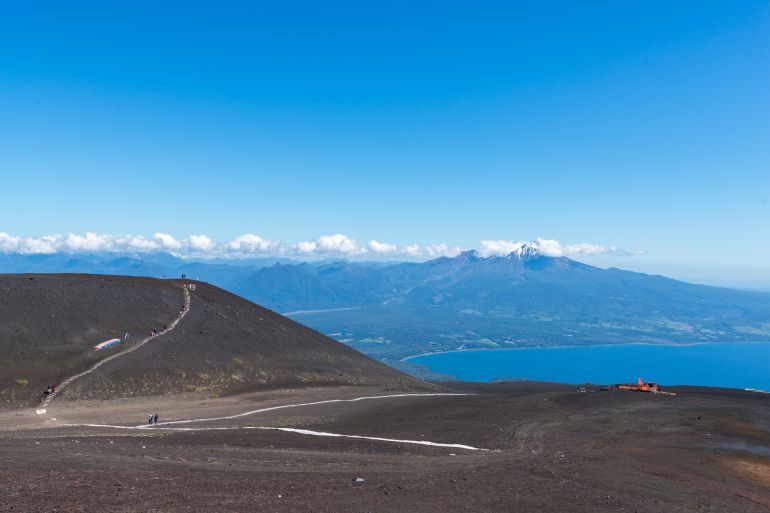 ▲오소르노 화산에 오르면 푸에르토 바라스 앞에 있는 얀키우에 호수도 조망 하실 수 있습니다.